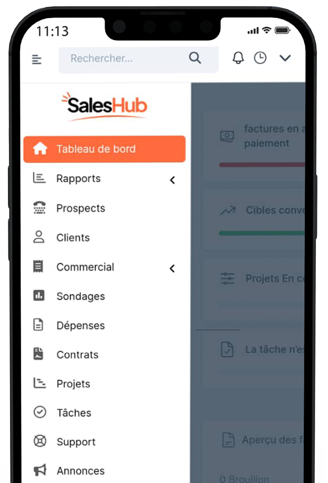 SalesHub est conçu pour aider les entreprises à mieux comprendre leurs clients, à mieux interagir avec eux et à offrir une expérience client exceptionnelle. Avec notre plateforme, vous pouvez facilement suivre toutes les interactions avec vos clients, telles que les Offres, Devis, Factures, appels, e-mails, messages, réunions et bien plus encore.