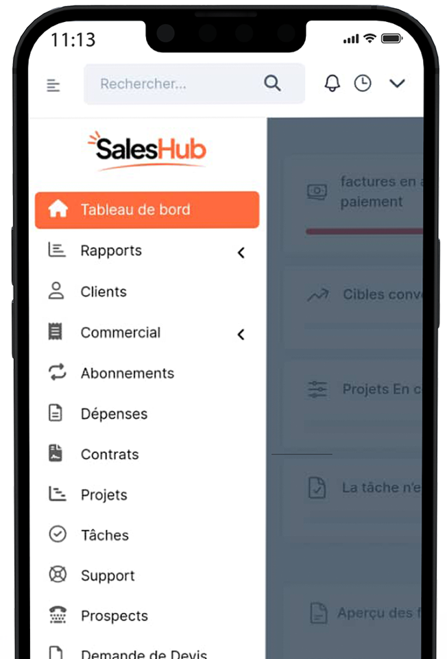 SalesHub est conçu pour aider les entreprises à mieux comprendre leurs clients, à mieux interagir avec eux et à offrir une expérience client exceptionnelle. Avec notre plateforme, vous pouvez facilement suivre toutes les interactions avec vos clients, telles que les Offres, Devis, Factures, appels, e-mails, messages, réunions et bien plus encore.